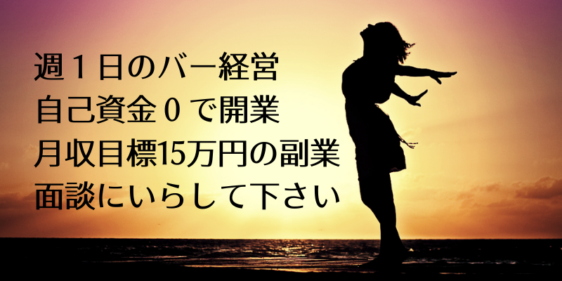 兼業、副業、サイドビジネス等が目的の素人さん歓迎です。副業可能な会社員、ニュークラレディ、クラブレディ、ラウンジレディ、ホステスさん、ホストさん、LGBTの方、ガールズバーのスタッフ、生保レディ、主婦の方、18歳以上の方(20歳までは飲酒不可)、自営業の方、暇な方、友達が欲しい方、合コン会場を作りたい方、FXバーを経営したい方、仮想通貨バーを始めてみたい方、カラオケスクールバーを始めてみたい方、外国語教室&スナックを始めてみたい方、趣味の教室を運営したい方、会社のコミュニケーションスペースを作りたい方(秘密の会議室)、シニアの方々のサイドビジネス(副業)として、気軽に楽しくバー・スナックのオーナーをしてみませんか?